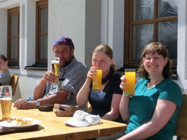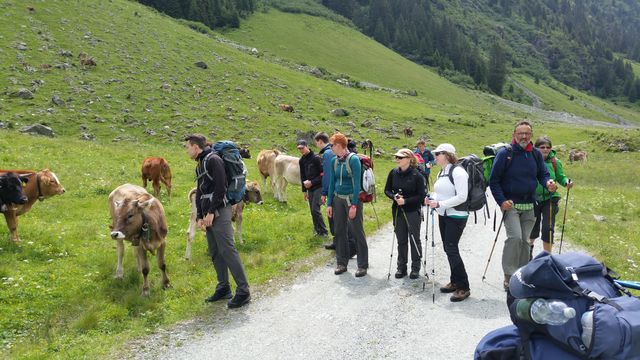 Gestärkt vom Frühstück wanderte der Verein gegen 10 Uhr wieder los und nahm die zweite Etappe in Angriff. 700 m Abstieg und weitere 600 Höhenmeter Aufstieg waren der Weg. Das Ziel, die „Nova Stoba“ auf der Bergstation des Versettla. Hier verbrachte der Verein noch eine Stunde und genoss bei Kaffee und Kuchen die Sonne. Gegen 17 Uhr ging es dann mit der Gondel wieder hinab ins Tal.