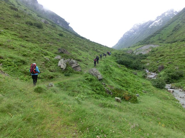 Bedingt durch den Kälteeinbruch in dieser Woche hatte es bis unter 2000m geschneit. Der Musikverein trotzte dem Wetter und kam schlussendlich, bis auf einen kleinen Regenschauer, trocken ans Ziel. Auch die 20 cm Neuschnee im Sommer nahm der Verein eher mit Humor. Geschafft von dem Tag ließ man es sich in der Hütte gut gehen. Bei gutem Essen, Bier und Wein saß man gemütlich und gesellig zusammen, bis gegen 22 Uhr die Nachtruhe im Wanderquartier angesagt wurde.