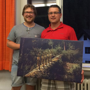 Patrick bedankte sie bei Fabian für die gute und zuverlässige Zusammenarbeit. Als Dankeschön überreichte er ein Bild mit dem Lieblingsinstrument des Dirigenten und einen Gutschein vom Musikhaus.