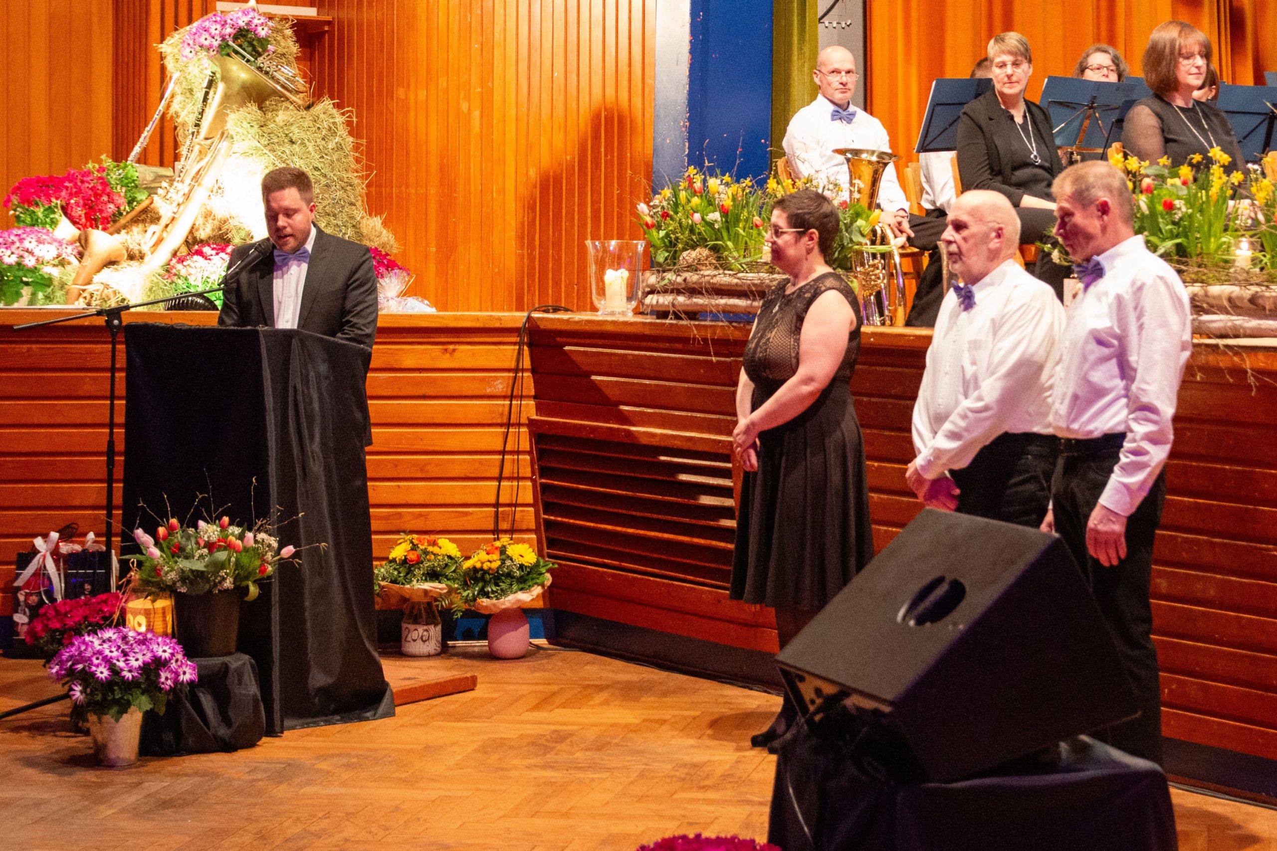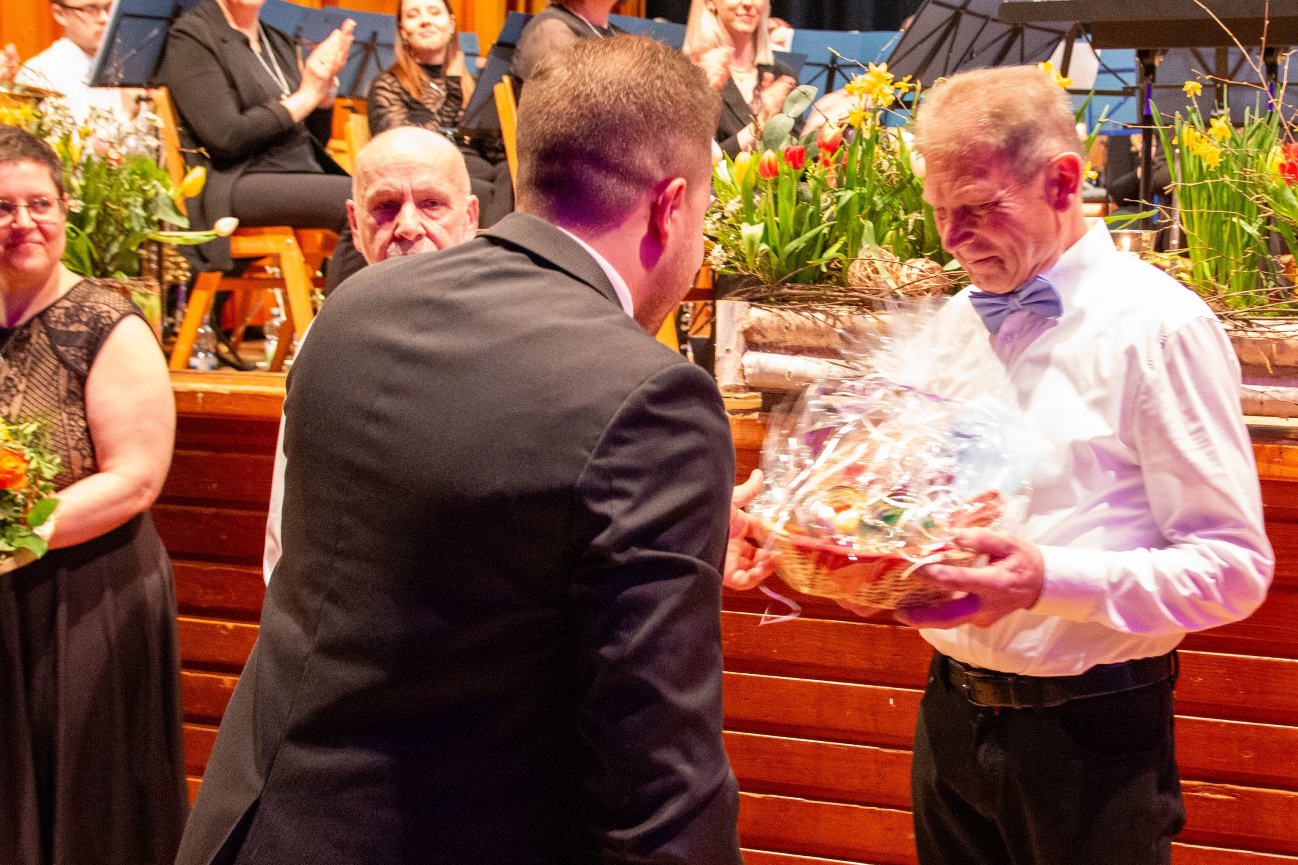 Für die geehrten Musiker hatte Dirigent Markus Sauer den Militärmarsch „Schönes Prag“ von Frantisek Kmoch ins Programm genommen, an dem aber auch die Zuhörer viel Freude hatten. Kmoch gilt als einer der populärsten Blasmusikkomponisten Tschechiens.