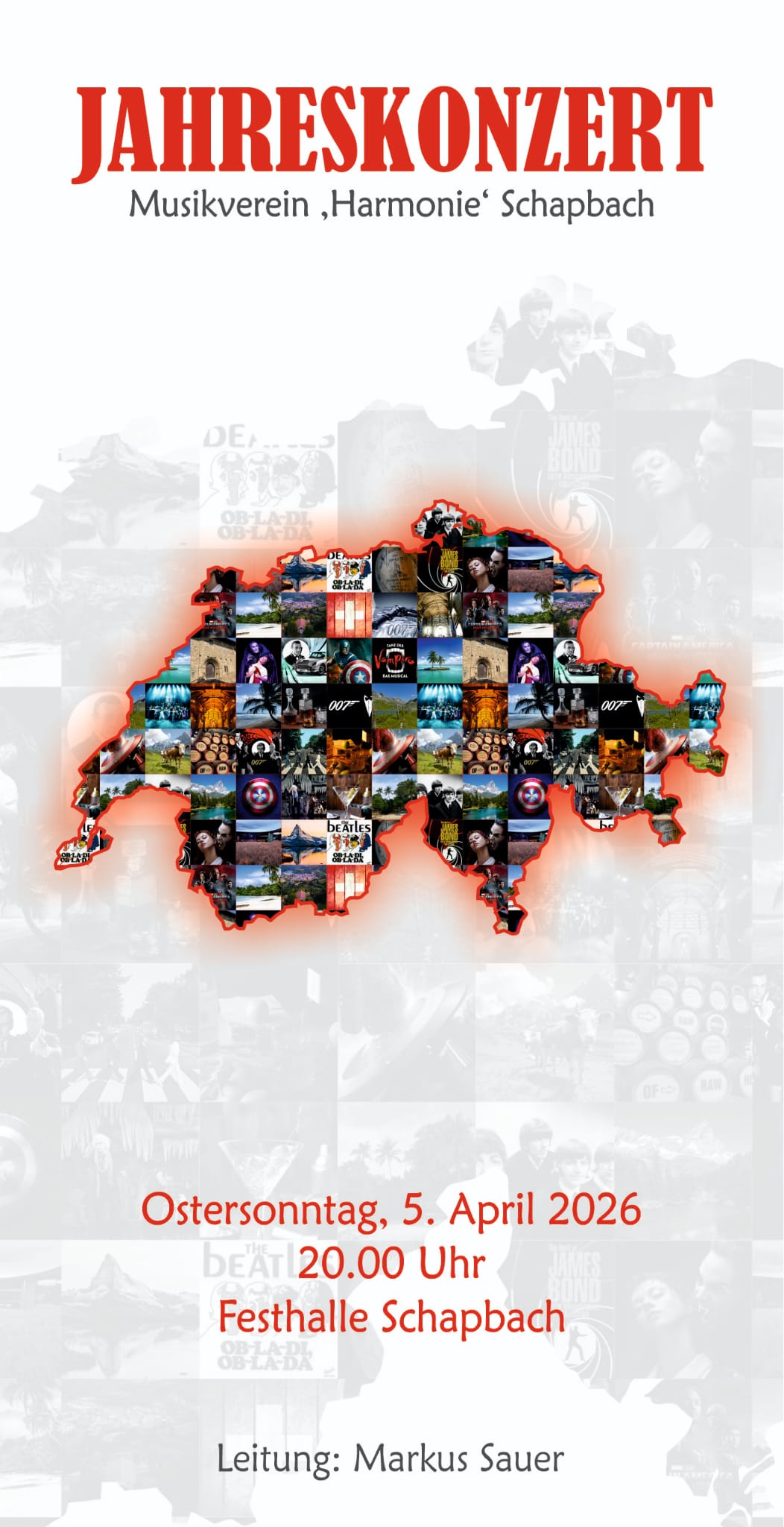 Der Musikverein „Harmonie“ Schapbach veranstaltet sein diesjähriges Jahreskonzert am Ostersonntag, 05. April um 20.00 Uhr in der Festhalle Schapbach. Dirigent Markus Sauer hat mit seinen Musikerinnen und Musikern für diesen Abend ein spannendes, abwechslungsreiches und anspruchsvolles Programm einstudiert. Eröffnet wird der Abend mit der eindrucksvollen Komposition „Schweizer Mosaik“. Ein besonderes Highlight bildet das Medley „Around the Whiskey Jar“ von Ivan Boumans, das auf traditionellen irischen Volksliedern basiert und die typische musikalische Vielfalt Irlands widerspiegelt. Mit dem Marsch „Captain America“ von Alan Silvestri erwartet Sie zudem ein mitreißendes Werk, das auf dem bekannten Filmmotiv basiert und durch seine Dynamik und Klangkraft überzeugt. Im weiteren Verlauf des Abends präsentieren wir mit „Tanz der Vampire“ und „Bond…James Bond“ bekannte Melodien aus dem erfolgreichen Musical sowie mitreißende Songs aus der beliebten Filmreihe. Den krönenden Abschluss bildet „Ob-La-Di, Ob- La-Da“ – Absolut unwiderstehlich ist dieser Beatles-Hit, der 1968 auf dem „White Album“ erschien und seither aus der Musikwelt nicht mehr wegzudenken ist. Ein beschwingtes und lebensfrohes Stück, das den Konzertabend stimmungsvoll ausklingen lässt. Wir wünschen Ihnen schon jetzt ein spannendes Konzert und freuen uns, Sie bei uns in der Festhalle begrüßen zu dürfen. Der Eintritt beträgt 8 Euro.